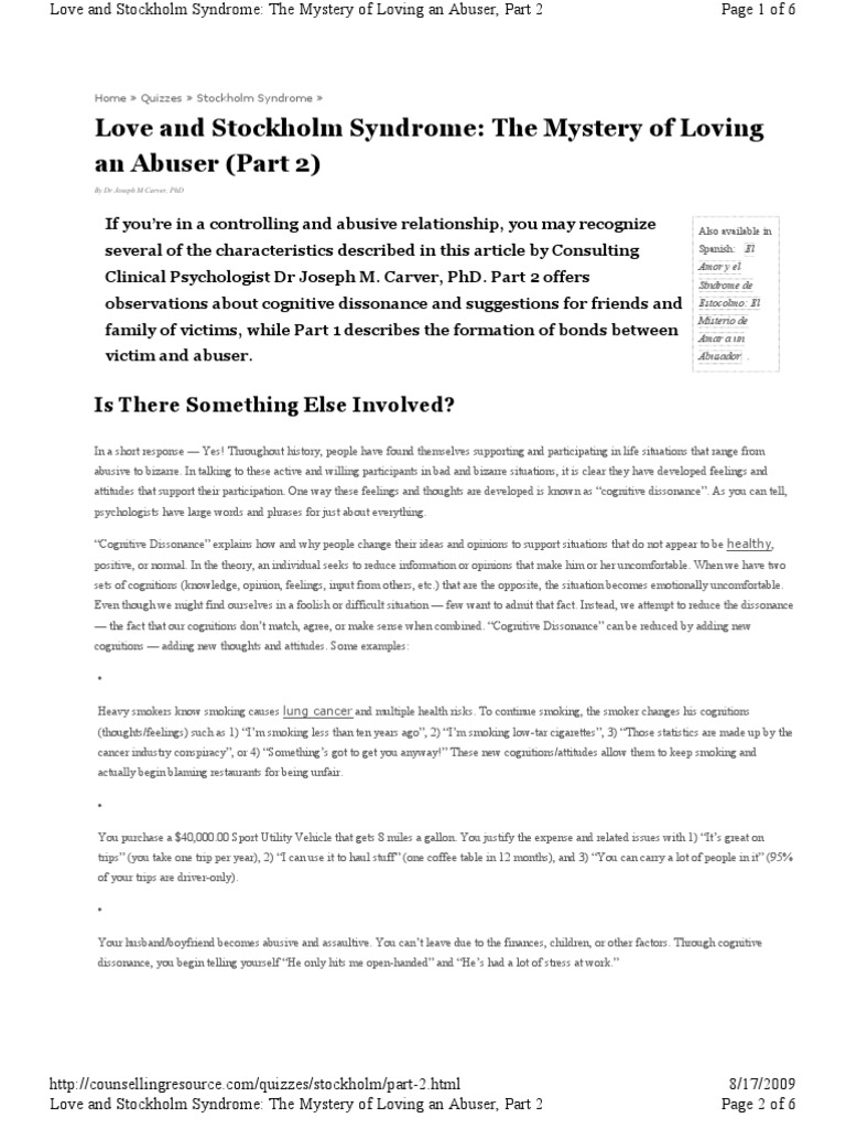 But my stockholm syndrome is in your room Pero mi sindrome de stockolmo está en tu cuarto Baby look what youve done to me One Direction Yeah I fell for you. Ich habe gehört dass das Stockholm-Syndrom wie die Spanische Fliege wirken soll. The Mystery of Loving an Abuser - Spanish Version Thanks to the efforts of Mariana Barrancos of Abuso Emocional this article is now available in Spanish.