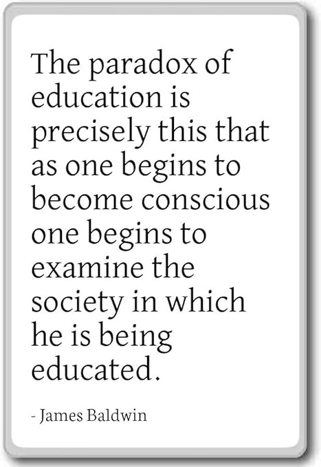 The paradox of education is precisely this. A leading figure in the civil rights movement Baldwin was also a key figure in the early gay rights movement. The paradox of education is precisely thisthat as one begins to become conscious one begins to examine the society in which he is being educated Baldwin 1963. Stated that the function of education is to teach one.