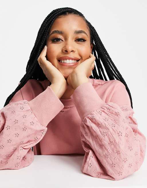 Blush Pink Maternity Nursing Sweatshirt. Mama Mini Set of Matching Pink Daisy Flower Knitted Jumpers.
